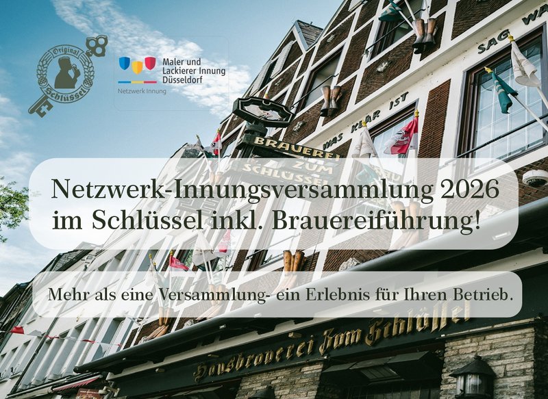 Die Netzwerk-Innungsversammlung 2026 unserer Innung ist geplant für den 27.04.2026, in der Brauerei zum Schlüssel inkl. Brauereiführung, unter dem Motto „Mehr als eine Versammlung, ein Erlebnis für Ihren Betrieb".